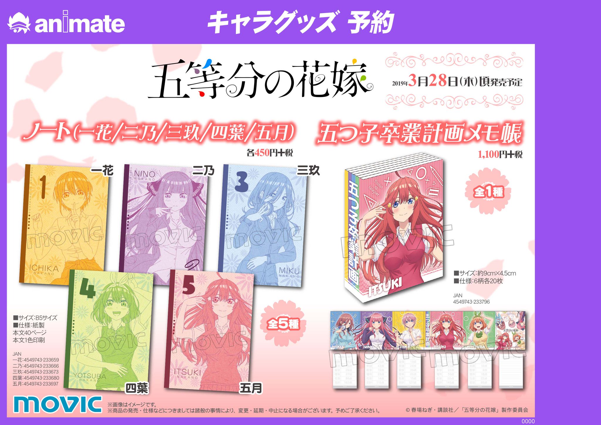 株式会社アニメイト 3月28日頃発売予定 五等分の花嫁 ノート 五つ子卒業計画メモ帳 予約受付中です 可愛いだけでなく勉強や仕事でも大活躍すること間違いなし 予約はコチラ ノート T Co vunhprmy メモ帳 T Co Oebqaqaa0e 五